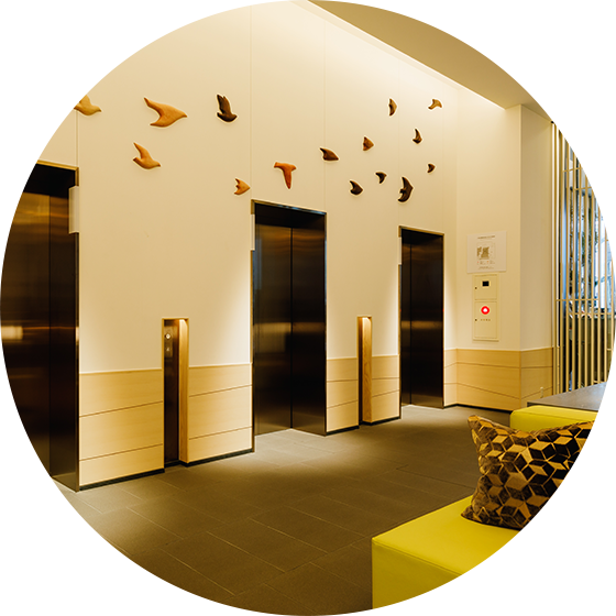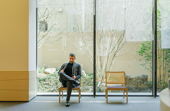 Discover the Japanese beauty in the decoration of the lobby area and courtyard with Shirane white stone.